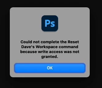 Photoshop 2025 v26.6 Bug - cannot read/write workspaces