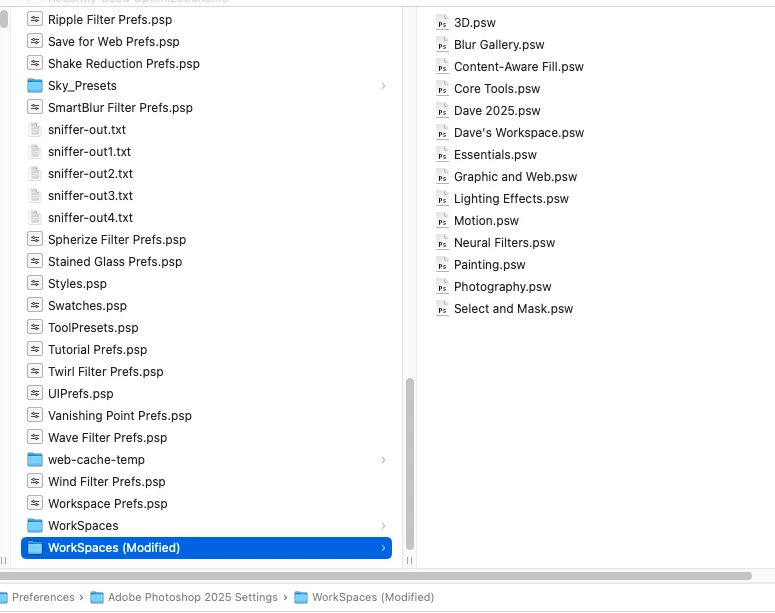 Photoshop 2025 v26.6 Bug - cannot read/write workspaces