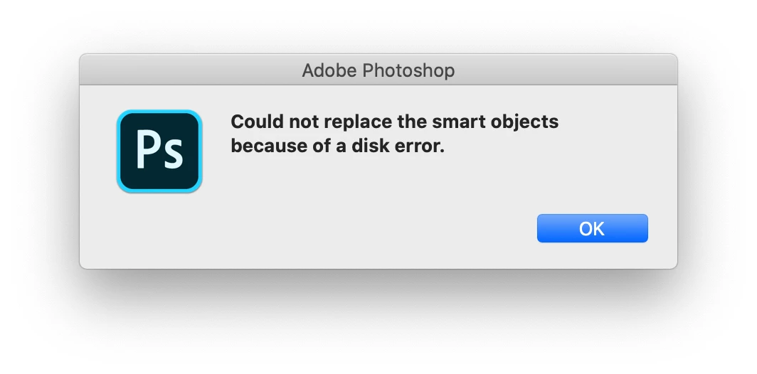 Photoshop 21.0.2 Starting to get a Disk Error with Linked Objects (Mac/GDFS) macOS Catalina 10.15.2