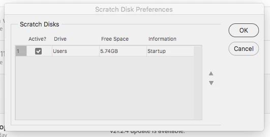 Photoshop 21.2.4 Unable to open because scratch disk is full