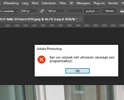 Message: "Kan uw verzoek niet uitvoeren vanwege een programmafout" ("Unable to execute your request due to a program error")