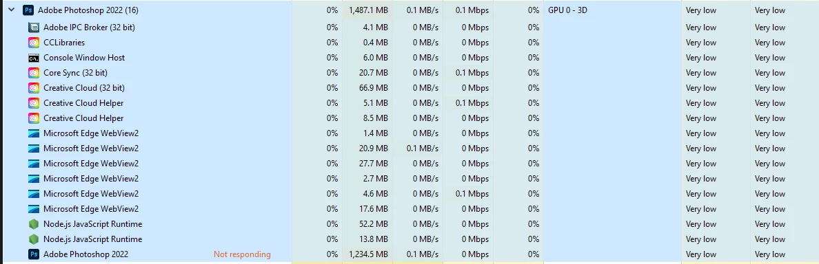 Below is a screenshot of my Task Manager for the Photoshop entry.