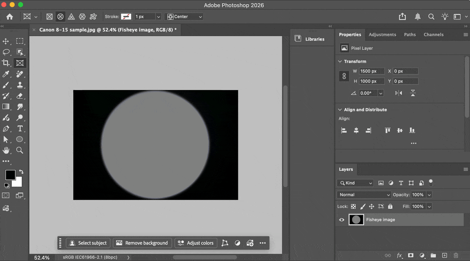 I shoot with a Canon EF 8–15 fisheye that produces a circular image. My workflow has been: