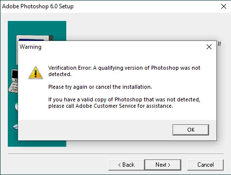 Photoshop 6 upgrade cannot find installed 5.5 version.