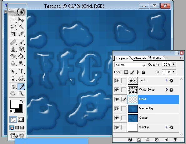 I am trying to follow a tutorial located at https://techlog360.com/create-a-water-drop-text-effect-using-photoshop/ but i am having difficulty at step number 22. WHen I select the Image==>Invert, my image does not look like the image in the tutorial. Here is what my image looks like after completing step 22.