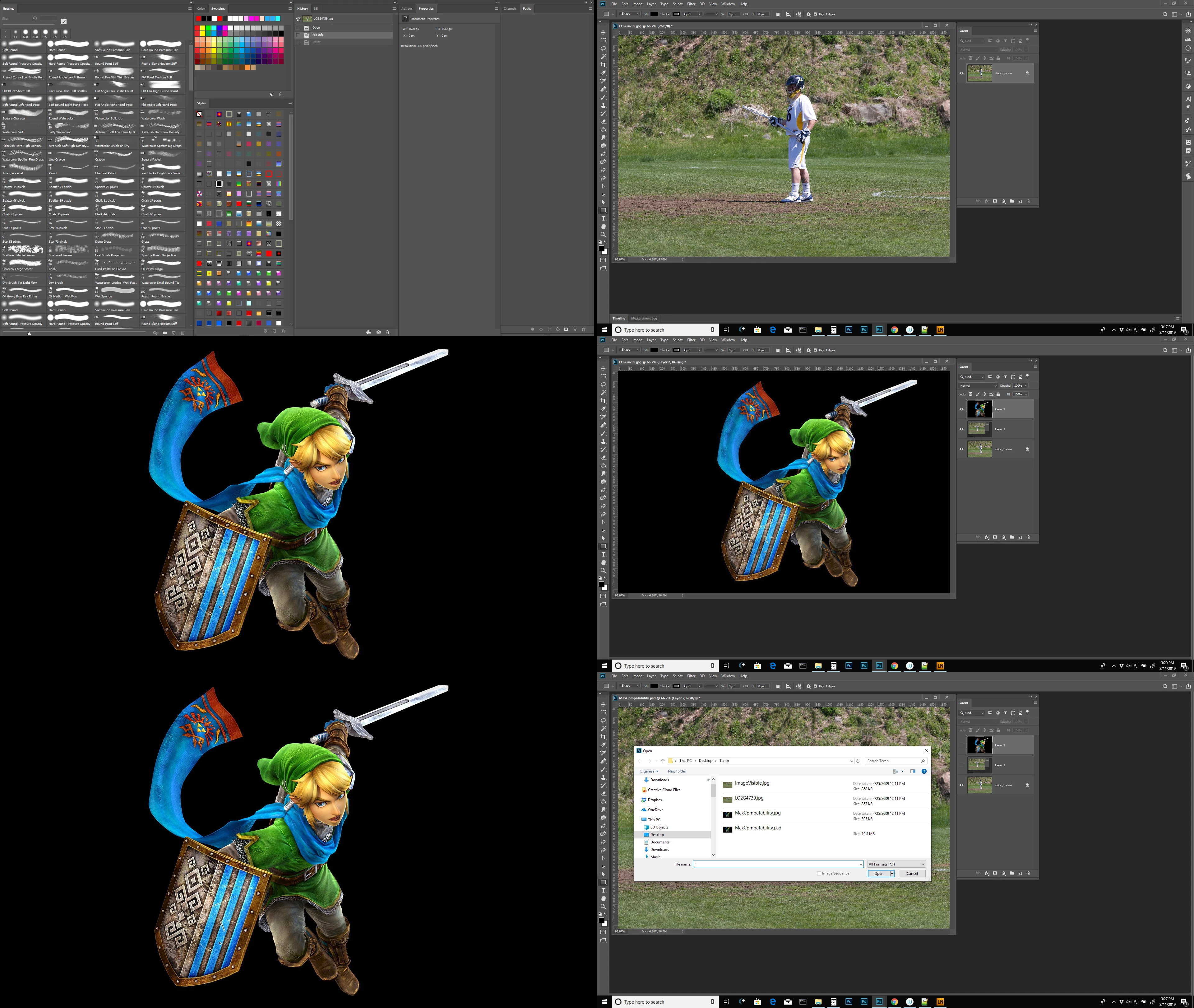 I added 2 low res images to the rendered scene and added a drop shadow to one of the objects and a transparency to the other. The file size at the bottom of the screen now says the file is 12M/31.4M however when i save to disk, the PSD file the file size on disk is showing as 99.6M. When I flatten the file and save as a JPG the file size is now 67.9M.