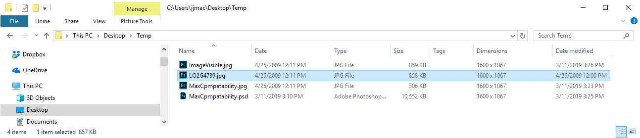 I have a JPEG file, created as a render output from a 3D software program. The file is 858Kb on disk and when opened in photoshop the file is 12M (2250px X1650px @ 150dpi).