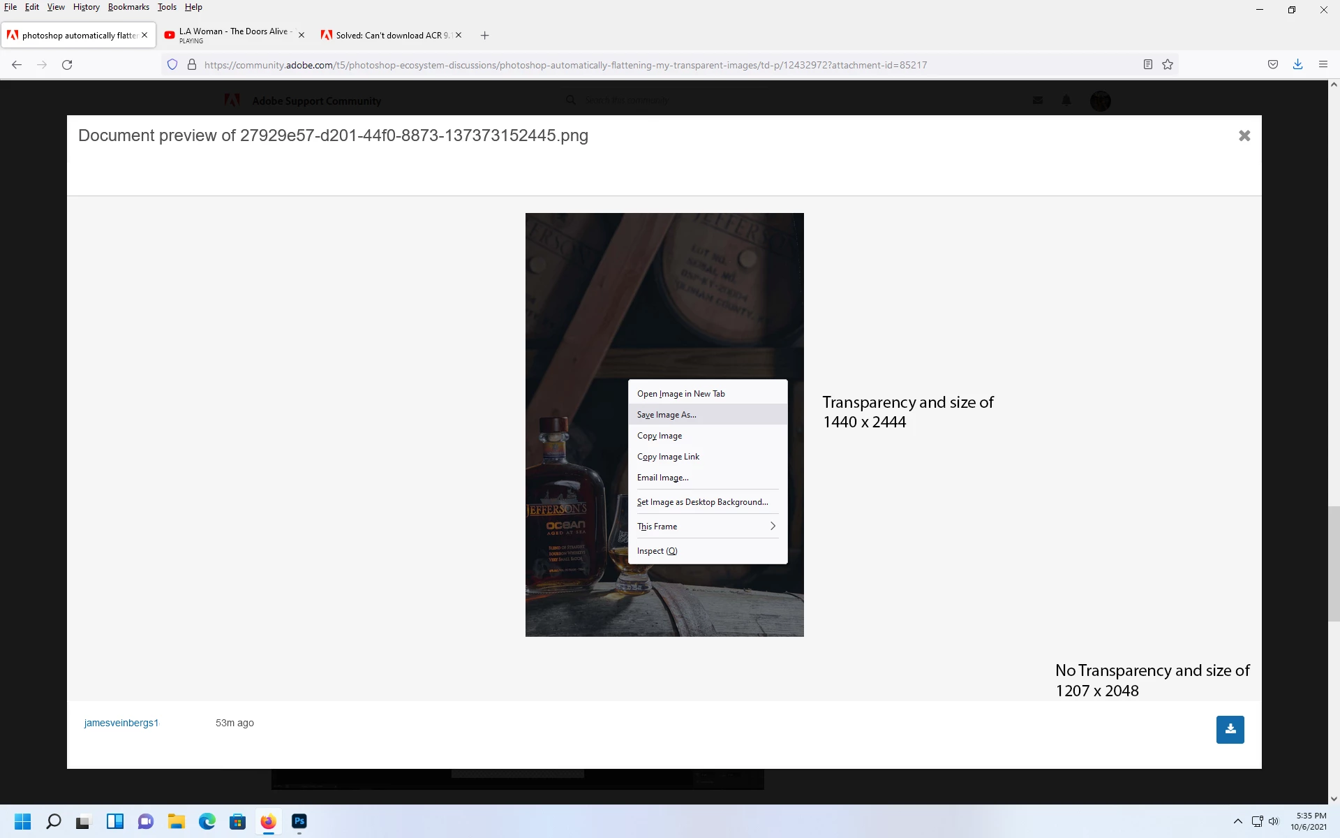 I did a deeper dive into this and have found the OP's file is using an indexed-color transparency attribute set for any white pixel to be transparent. According to the official specification for PNG, this is all well and good (it uses a flag at the head of the file: "tRNS"). What it requires, however, is a preceding flag "PLTE" which defines the color mode. Without it, it seems Photoshop is (properly?) strictly ignoring the "tRNS' flag altogether and opening the file as RGB without Transparency. This file is indeed missing the PLTE attribute.