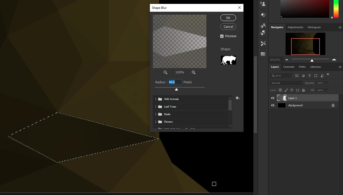 Hello everyone, I'm fairly inexperienced in Adobe Photoshop, and want to try and get out of my comfort zone a little. I started work on a irregular polygonal background - a photo of what I've got so far should be linked on this question - following a tutorial I found. Essentially, the gist was that I needed to use the Polygonal Lasso tool to select triangles, then use the Average Blur filter to get a consistent colour. This worked fine, and I got most of a page done, but when I went back the next day to finish the background, this technqiue I had been using had stopped working completely. All of the Blur filters had stopped working, although I only really care about the Average one at the moment, and resetting Preferences, opening and closing the document and the application has done absolutely nothing. I even went to a different device on a different network, and it still didn't work. Has Adobe rolled out a new update that's changed how these filters work, and can anyone recommend a different way to get this background effect? Thank you.