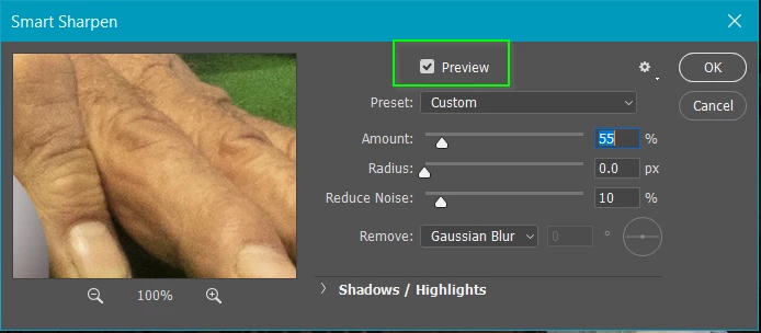 The secret is to make the layer a Smart Object before applying the filter. That allows you turn the filter off and on to give your Before & After and it also allows you to adjust the filter settings as often as you need to get it looking right.
