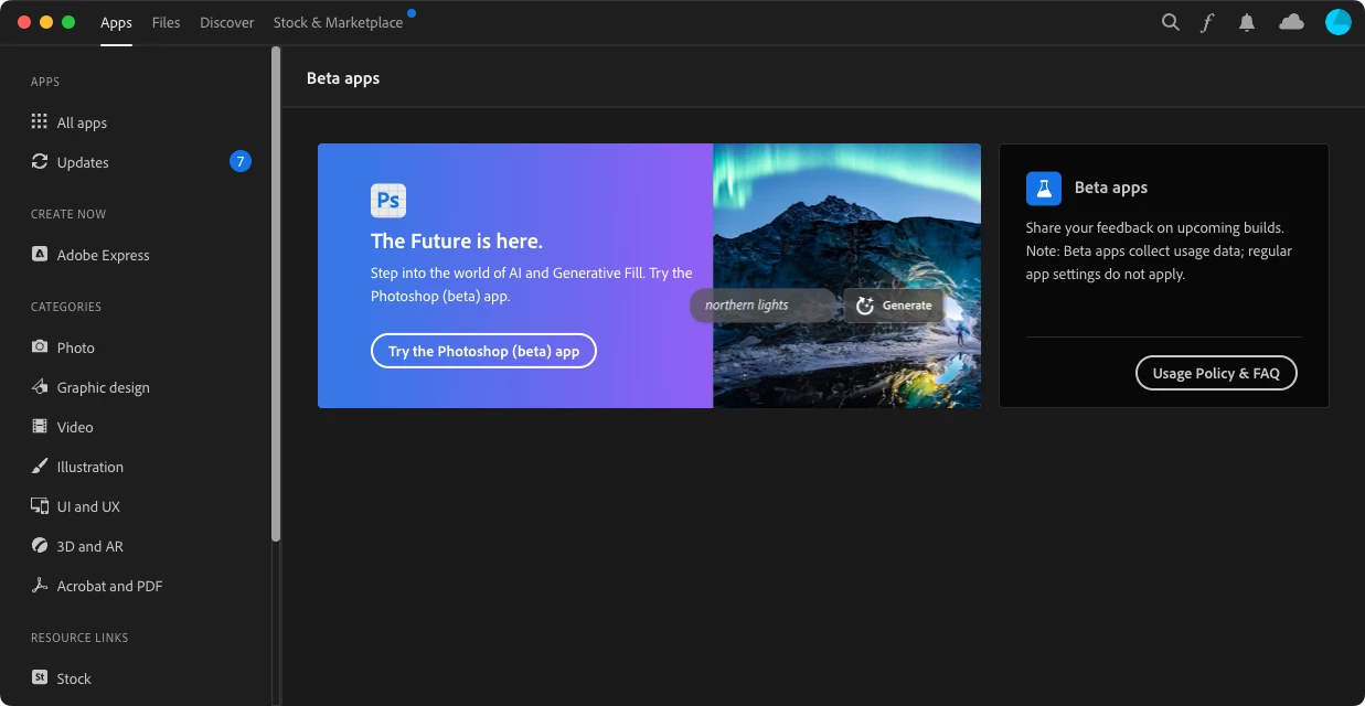Hi I'm running MAC OS Moneterey 12.6 and the latest creative cloud Version 5.10.0.573 but there is no category listed for the Beta Program. How can I get it? Thanks