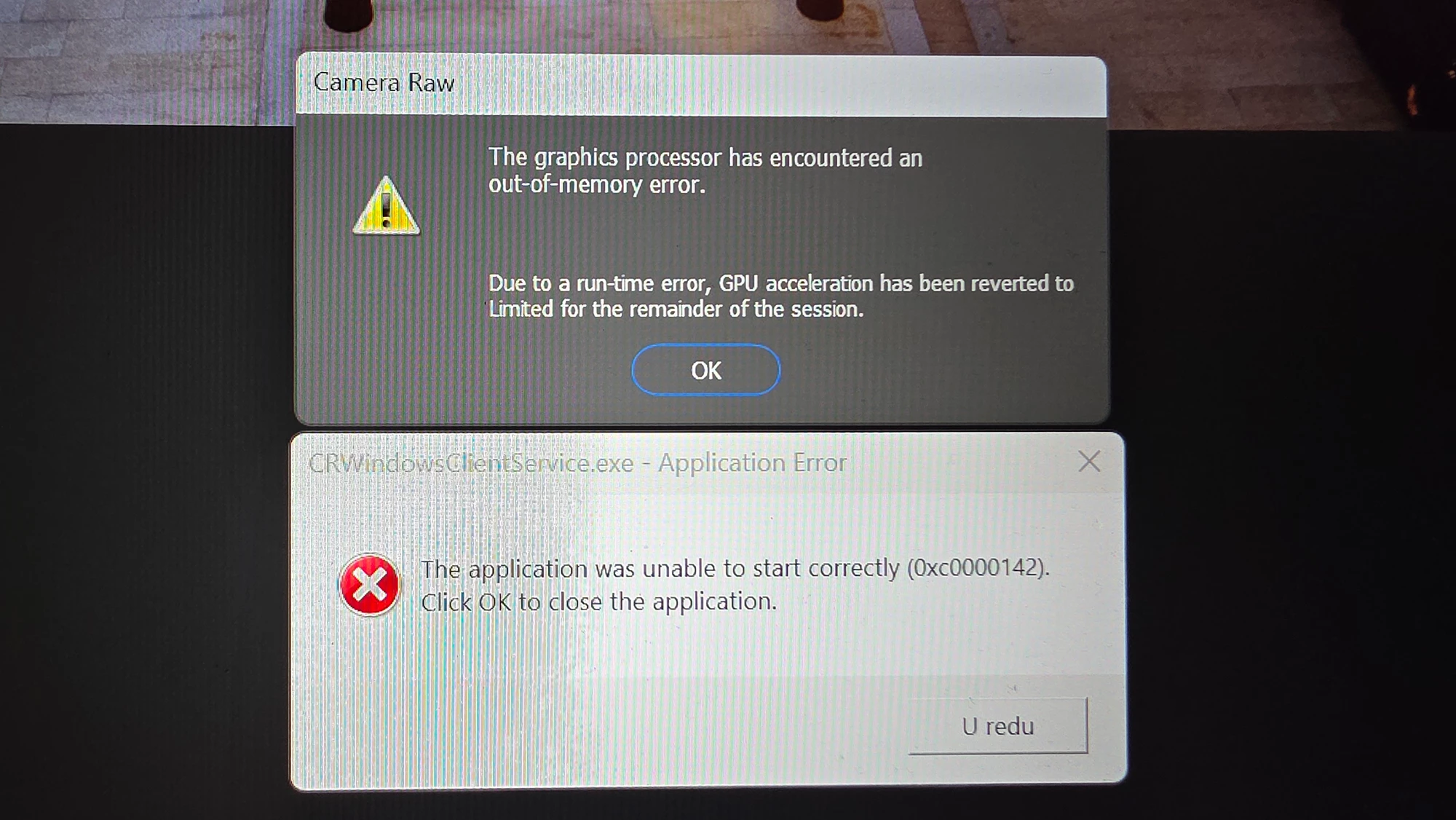 Photoshop, Bridge, and Camera Raw are constantly crashing