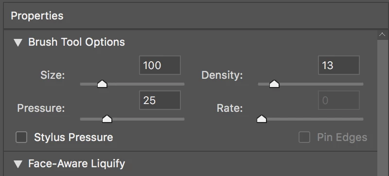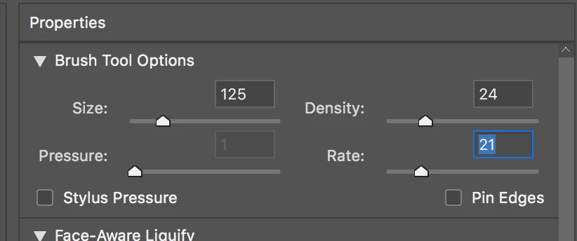 Hello - I'm doing a photo retouching tutorial, and it wants me to change the Brush Rate in Photoshop Liquify filter. That box is greyed out.