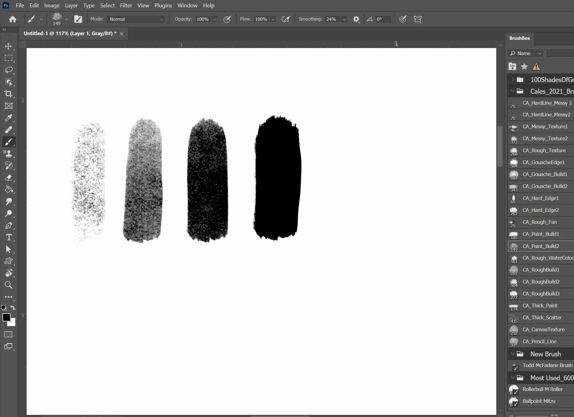 I have attached a photo of a brush I have, that applies more/less "texture" (for lack of a better word) based on how hard I press down. 25% pressure gives a light texture, 50% medium, 75% dark, and then 100% is basically black.