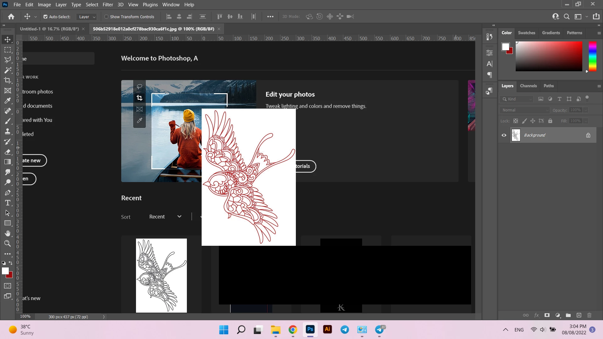 Hey! I had Photoshop 2021 installed on my laptop and I upgraded it to 2022. Since the upgrade, I face these kinds of bugs and lags that even made me downgrade to 2021 again! But the problems are still there and donno how to fix them! I checked every thing related to performance in Photoshop settings like dedicated memory size being in ideal range, scratch disk set to SSD drive with at least 100 gigabytes free space and using dedicated graphic card checked! And this screenshot is one of the bugs. when I open a photo, this is how it opens! The new tab is open but it still shows the home screen on the background Anyone knows how to fix it?