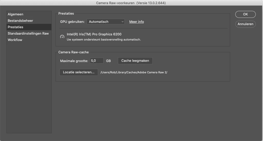 • Hold down the Command key and select Photoshop > Preferences > Camera Raw (macOS) or hold down the Ctrl key and select Edit > Preferences > Camera Raw (Windows).