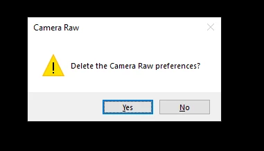 • Click Yes in the dialog that asks "Delete the Camera Raw Preferences?"