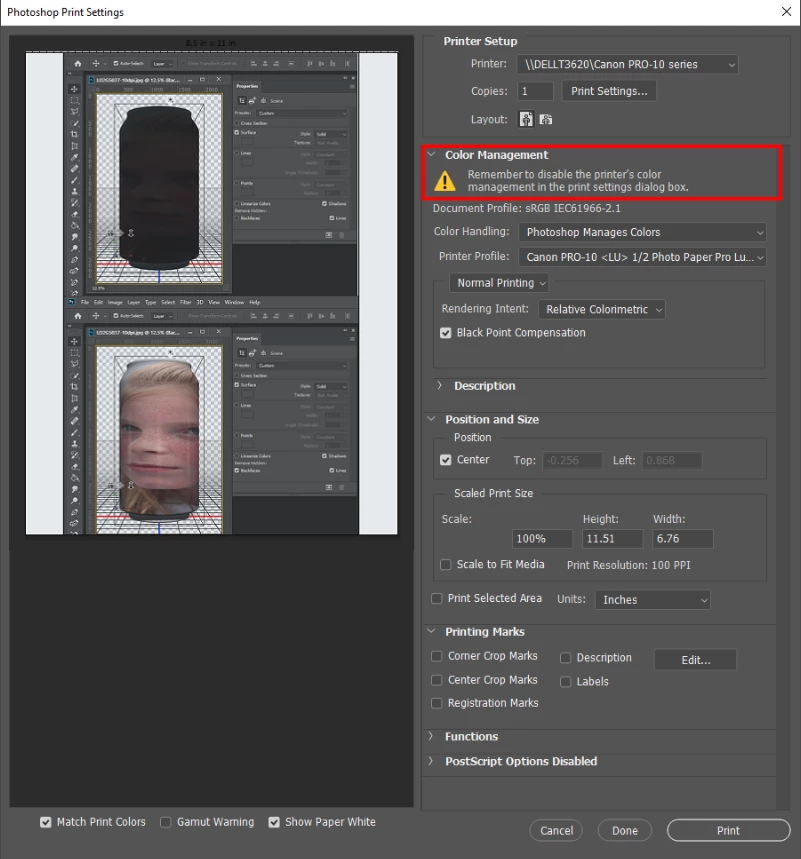 When I print something using my own profile or Epson profile using photshop controls color it looks bad. It works when printer controls color. Color mode is off and greyed out so I don't think its double profiling. Please help Thank you