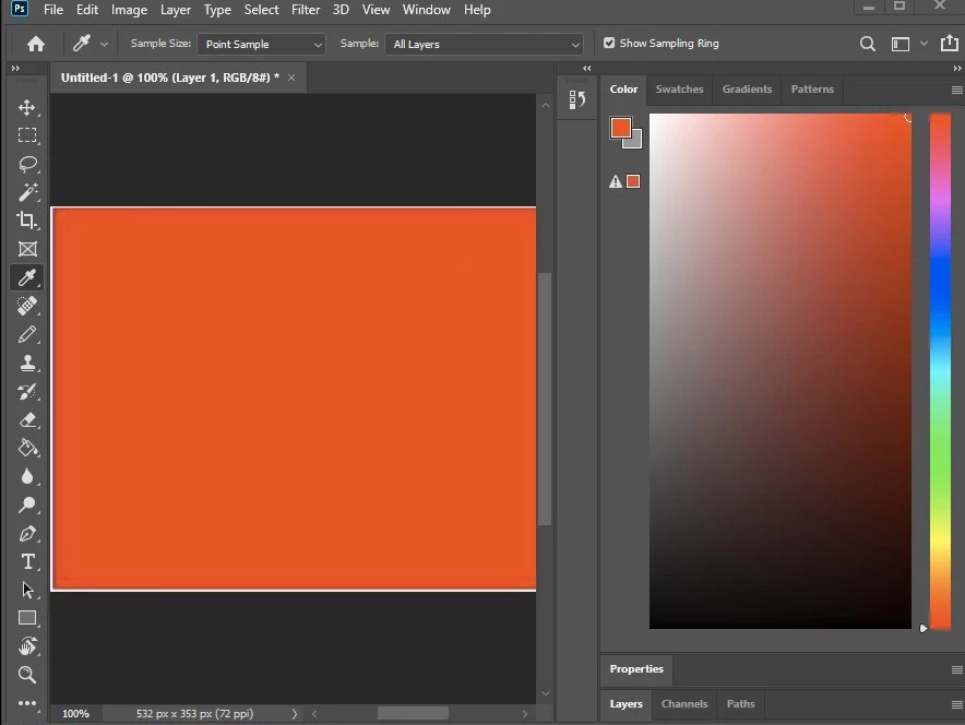 Photoshop can't display the color red (only orange)