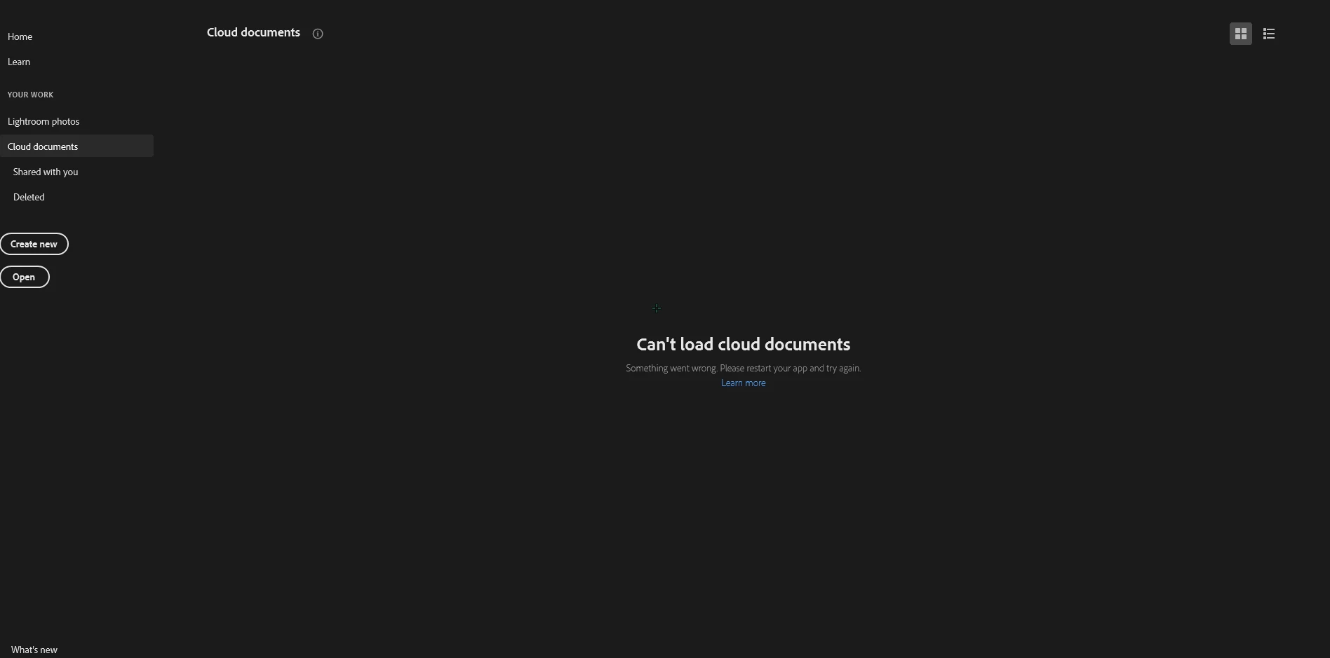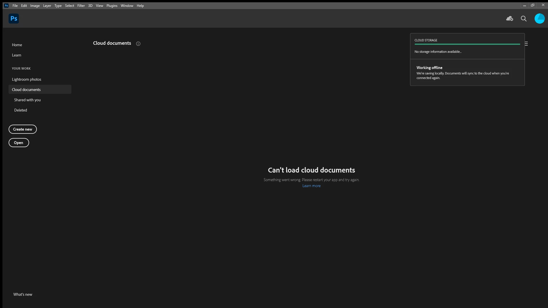 Photoshop can't load cloud documents and unable to save new documents as jpeg and other formats.