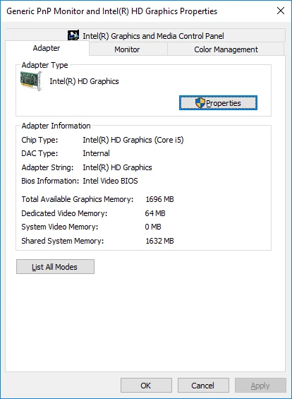my graphics processor driver: Intel HD Graphics.