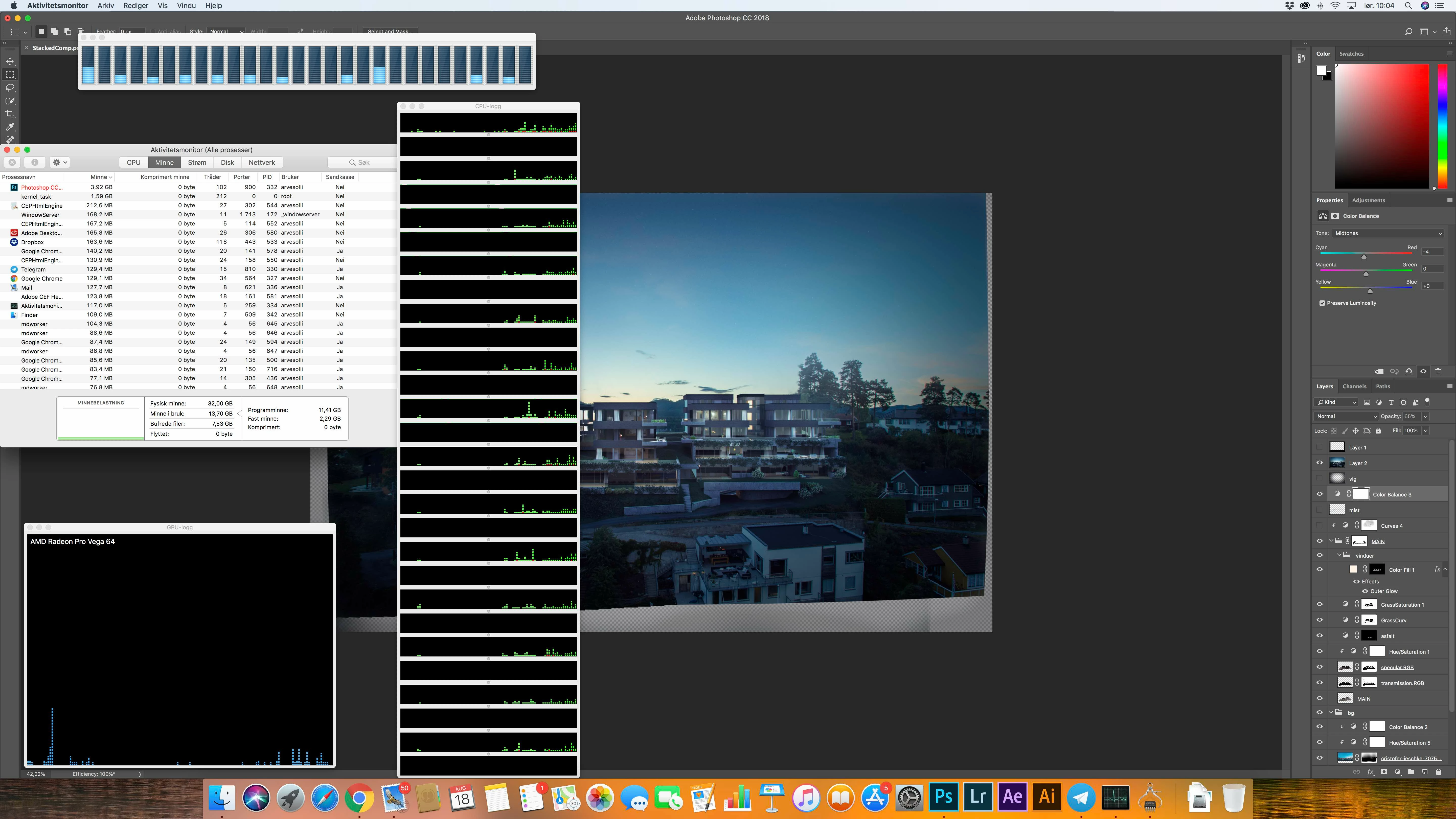 The PSD i am working on is a 6389 x 4116px comp of different 3d, and photo layers in 16 bit. I have 21 layers and 3 groups.