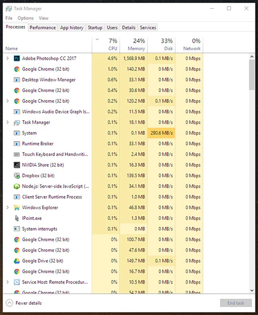 I upgraded my Photoshop to CC 2017 today and since the upgrade it has been very very slow. When I click on File menu the dropdown menu appears like after 3-4 seconds. When I delete layer it take about 10 second. Zoom in and out are terribly slow. I work on Photoshop everyday hope to get the problem resolve as soon as possible.