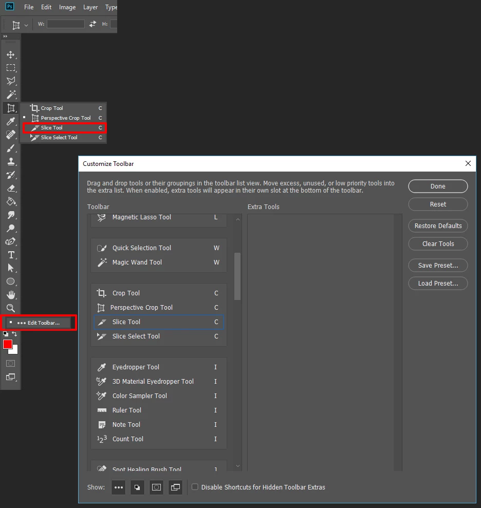 The old Photoshop had the "Slice Selection Tool", it was easier. What ever happened to it ? Why was it not included withe the new Photoshop CC 2018 ?