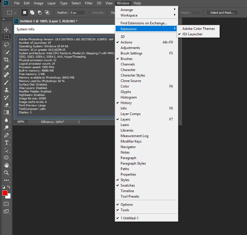 Photoshop CC 2018 Extensions Greyed Out