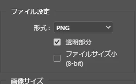 ※32bitのpngで書き出しても、再度ファイルを開くと8bitのpngファイルになっておりました。