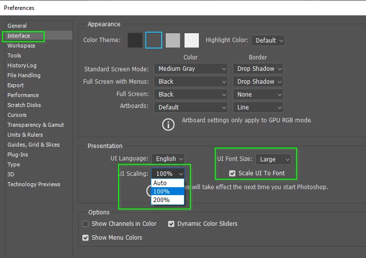 Hello. I am facing issues related to the application interface. I am using dell 15 inches laptop with a full hd display. I have installed the updates and now i am using cc2019. I am facing tis for the first time that the application interface is too large and i have tried various solutions over the internet but not getting successful so far. Is there any idea how to get a perfect size interface. Seems like there is a problem of photoshop interface with 125% display settings.