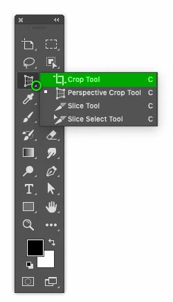 If you have not customized the Tools panel, the Crop tool may be hiding in its tool group. This may have happened if the Perspective Crop tool was recently used and brought to the front of the group. Click and hold the mouse button on the tool group to open it and see all the tools in the group, then click the Crop tool to bring it to the front again.