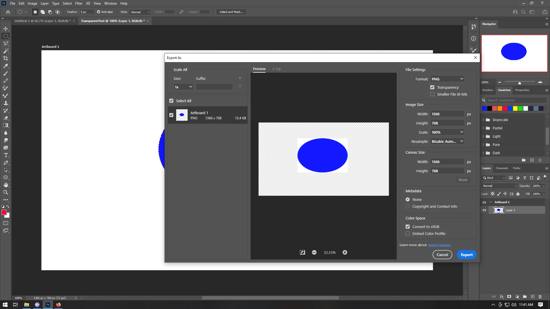 When exporting the document to PNG, the shape is surrounded by a non-transparent white box