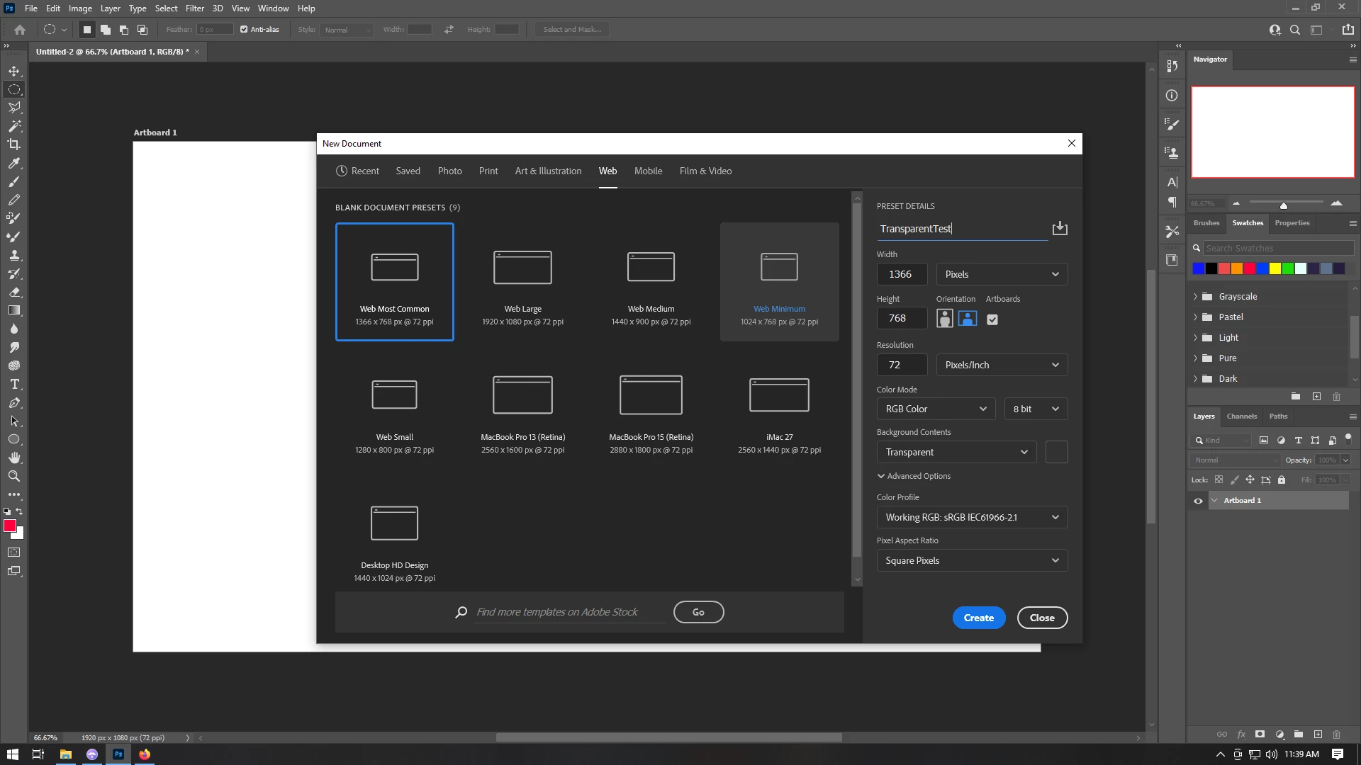 Photoshop CC 2021 - 22.4.2 - Can't Create Transparent Document
