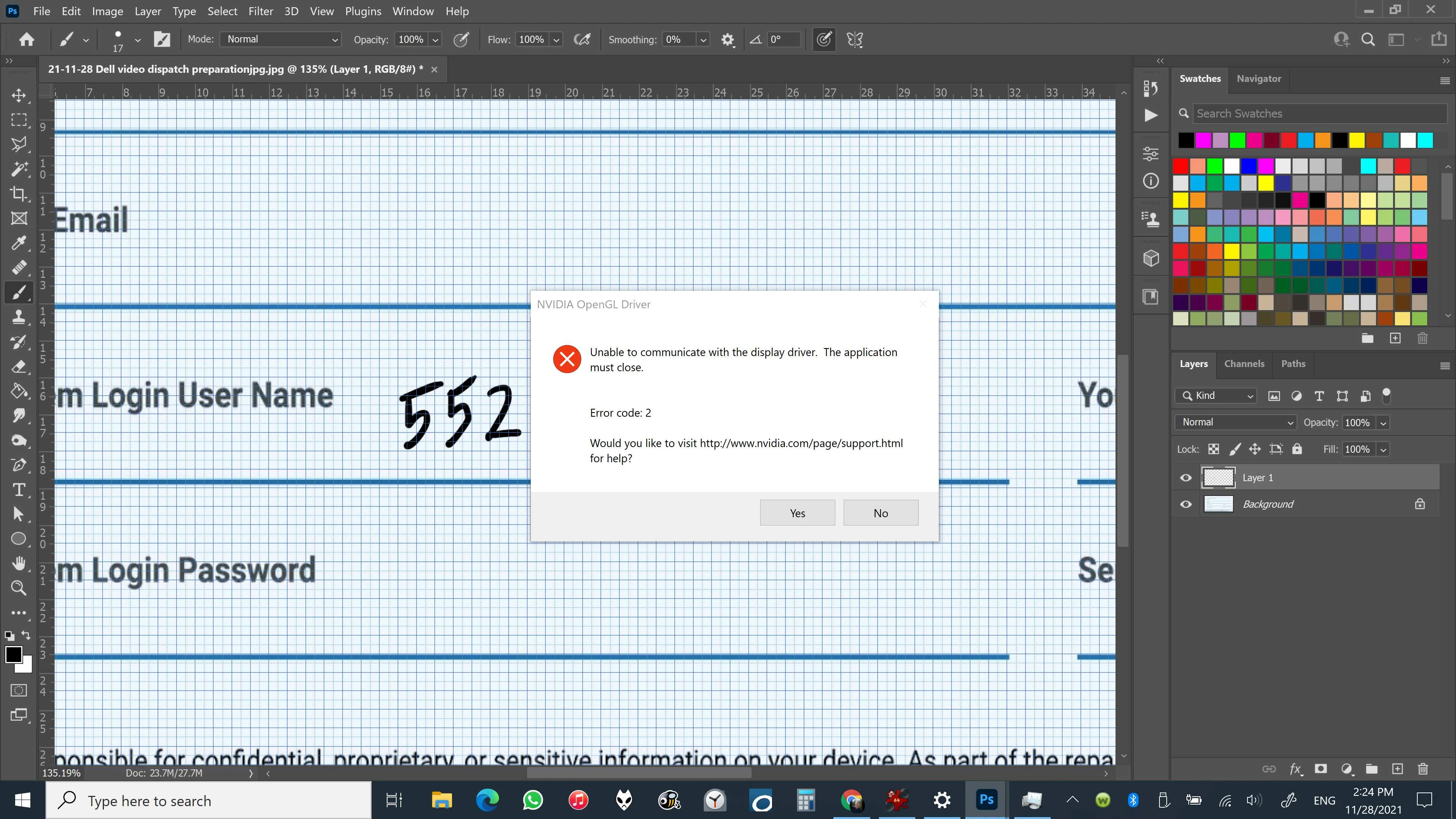 Photoshop CC crashes - conflict with NVIDIA Quadro M1200 graphics unit. Any suggestions?