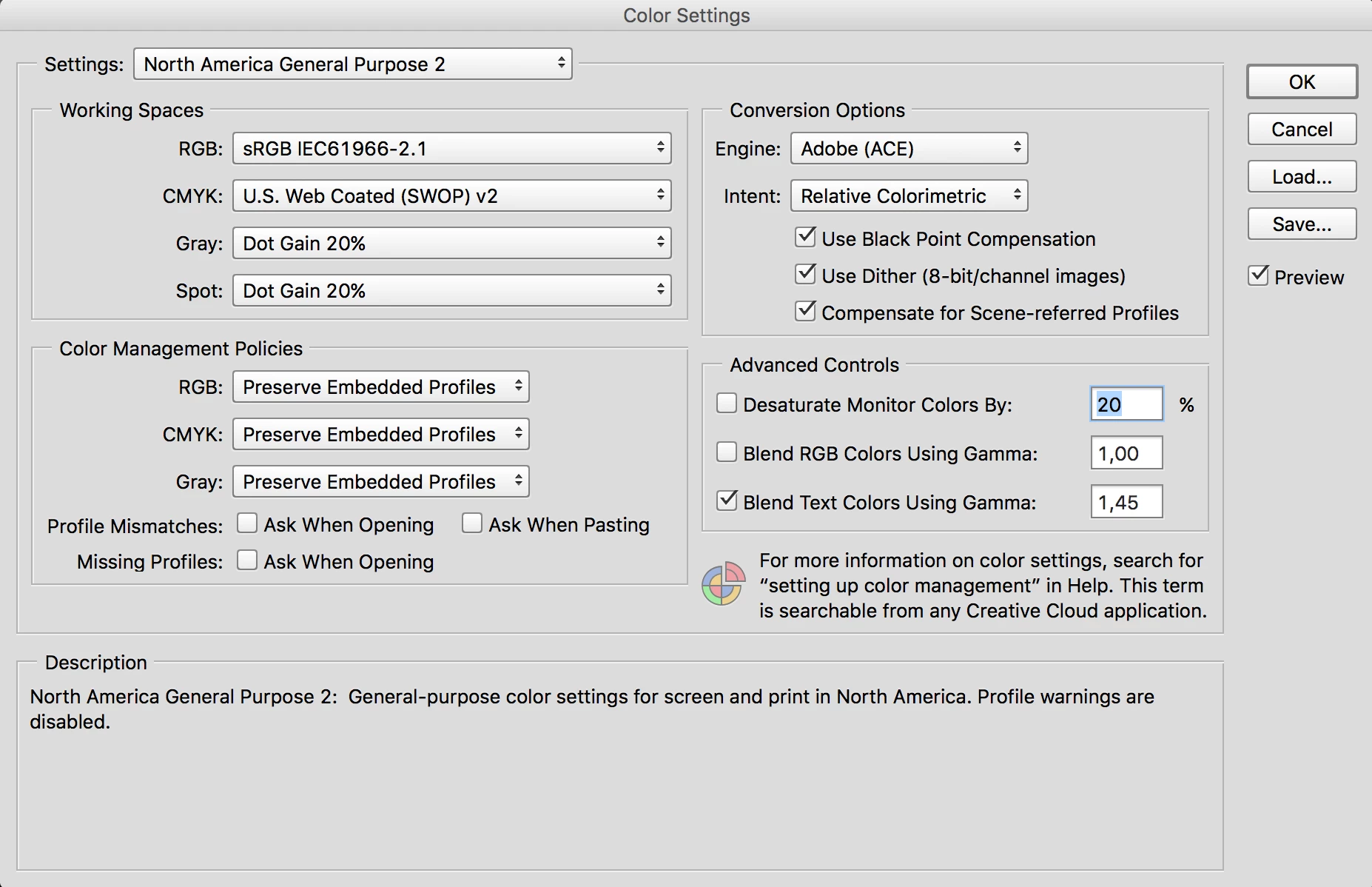 2) I make sure this is the same profile I use under Edit > Color Management in whatever version of Photoshop I am using.