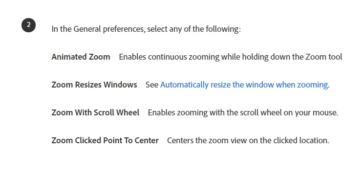 updated cc and lost my automatic resize when zooming. Have reset my workspace, preferences, etc and can't get it working. researching this I keep finding the following fix: