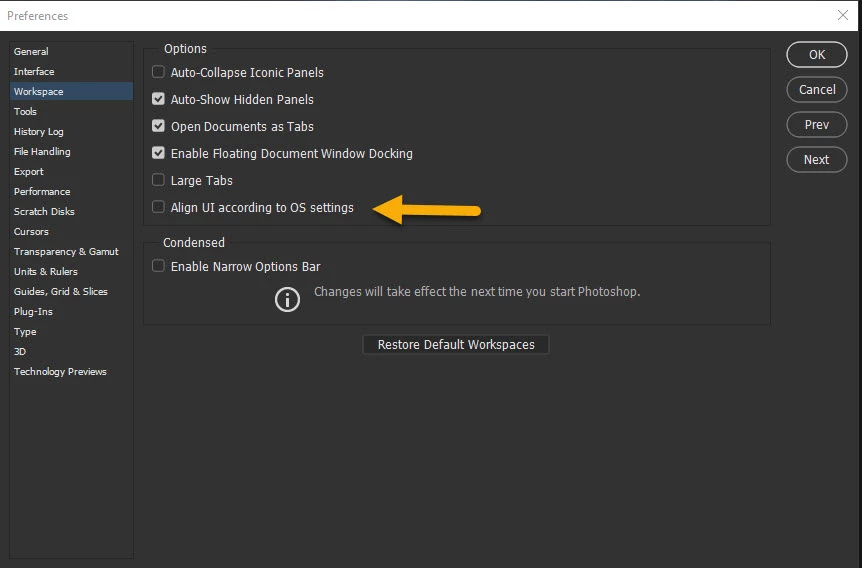 For some reason, my Photoshop work space is huge. All the buttons are way out of proportion, to the point where I cannot see the bottom of the screen. I have tried General Preferences, looking in Work Space, and just about anything I can find online. The only thing I have found that works is changing the screen resolution on my laptop, but if I do that, it screws up the other programs in CC. All the other programs are a normal size. Is there anything I can do to fix the size of Photoshop without changing my laptop's resolution?