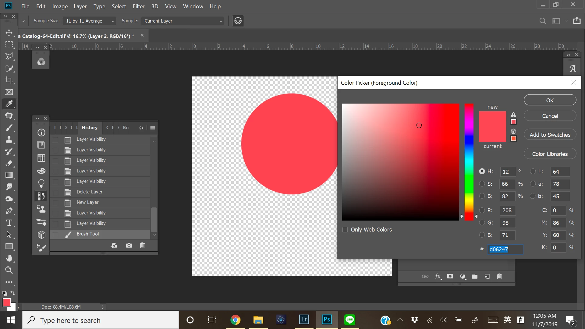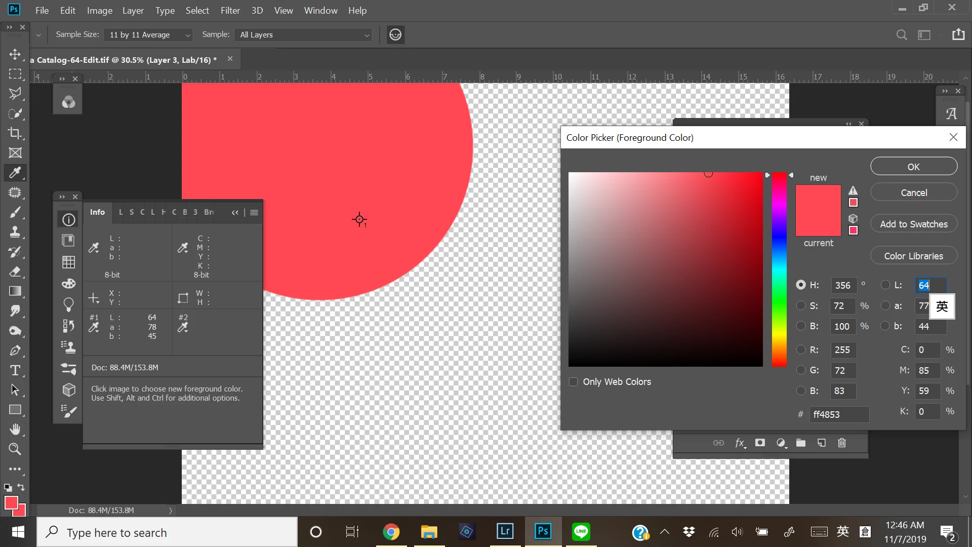 1) I entered a color code #D06247, and when I changed mode to LAB color, I found the #D06247 changes to #ff4853. Though the color seems no change to my eyes, the color point at hue scale is at very different position.