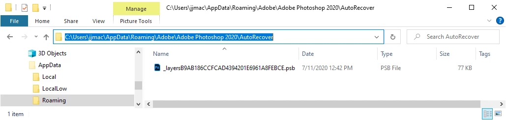All my other things I had pulled up on my PC recovered, but my photoshop is acting as if this file I was just working on, never existed. It does not pull up on 'recents' and when I search my computer files for auto recover, there is nothing. I have it so I can see hidden files as well. It is like its no where to be found. I went to the file listed on my auto recovery tab, and its empty. Is there any way to recover this file?