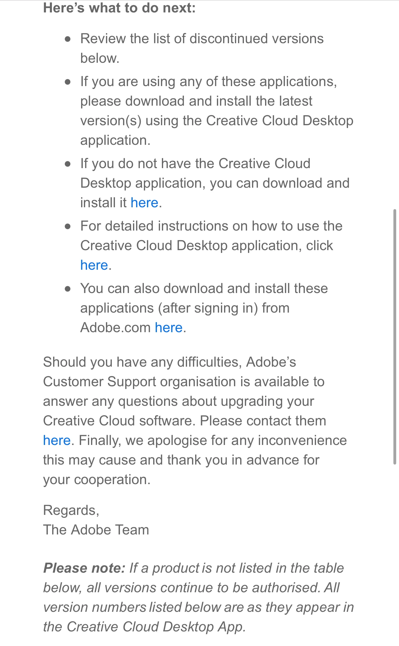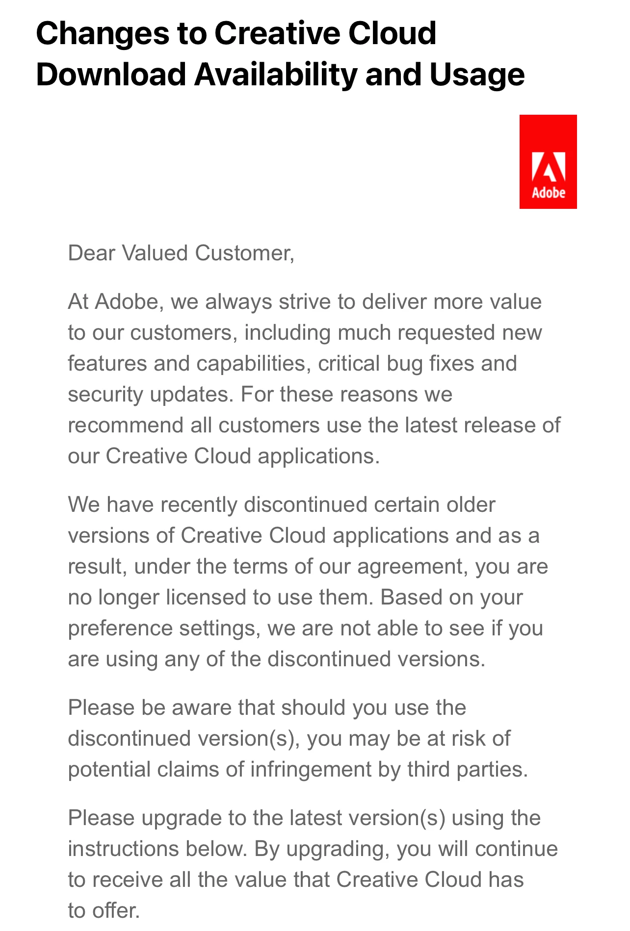 I would like to ask if I can still use my perpetual version of Photoshop CS4 Extended edition bought legally e registered with Adobe, according to Adobe 2019 email :"Changes to Creative Cloud Download Availability and Usage"?