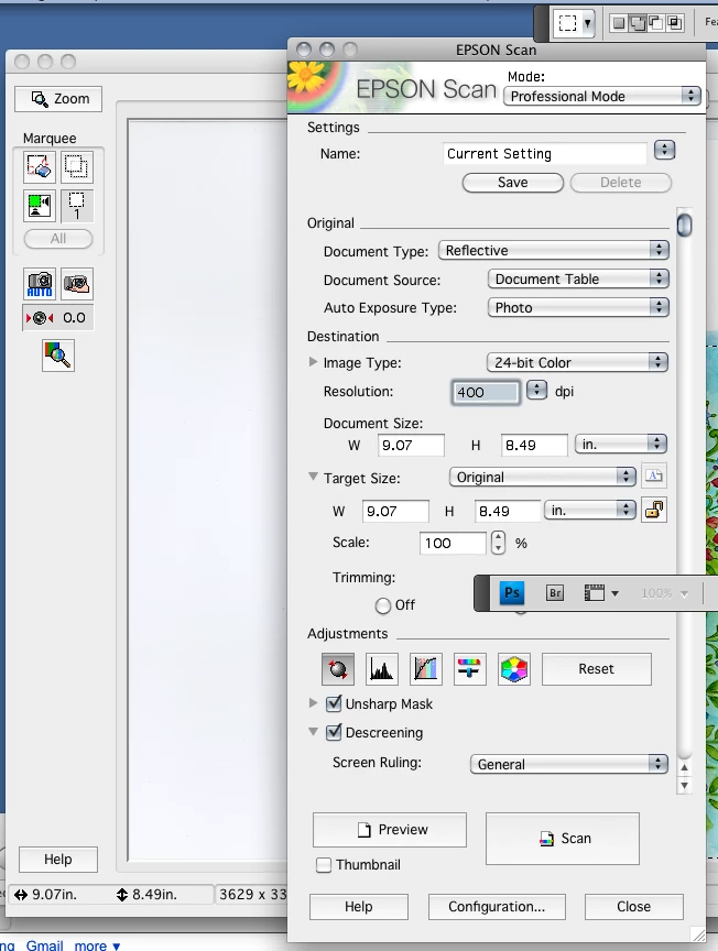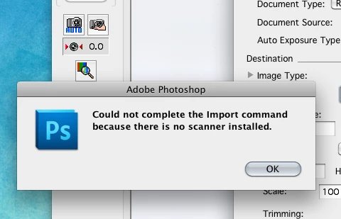 I just tried and can scan  in mac preview but I do not get the Epson driver box. (below) I need that from what i scan . What is ODD is I can preview  the image but then I get that error message (below) when I try and scan.  Do you know if others are not able to scan using Epson and CS5? Have you found any other info on this? Before I purchase CS5 I need this to work. Thanks!!
