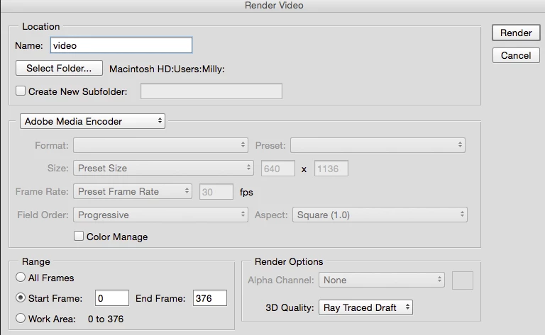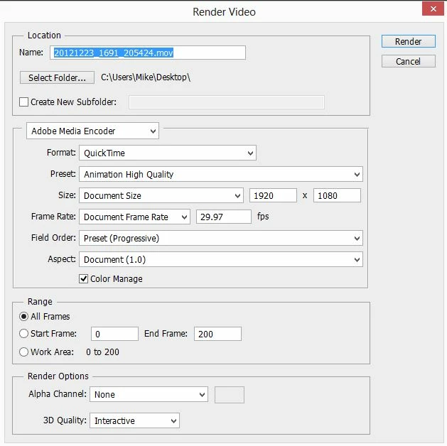 Photoshop CS6 export video to MOV format
