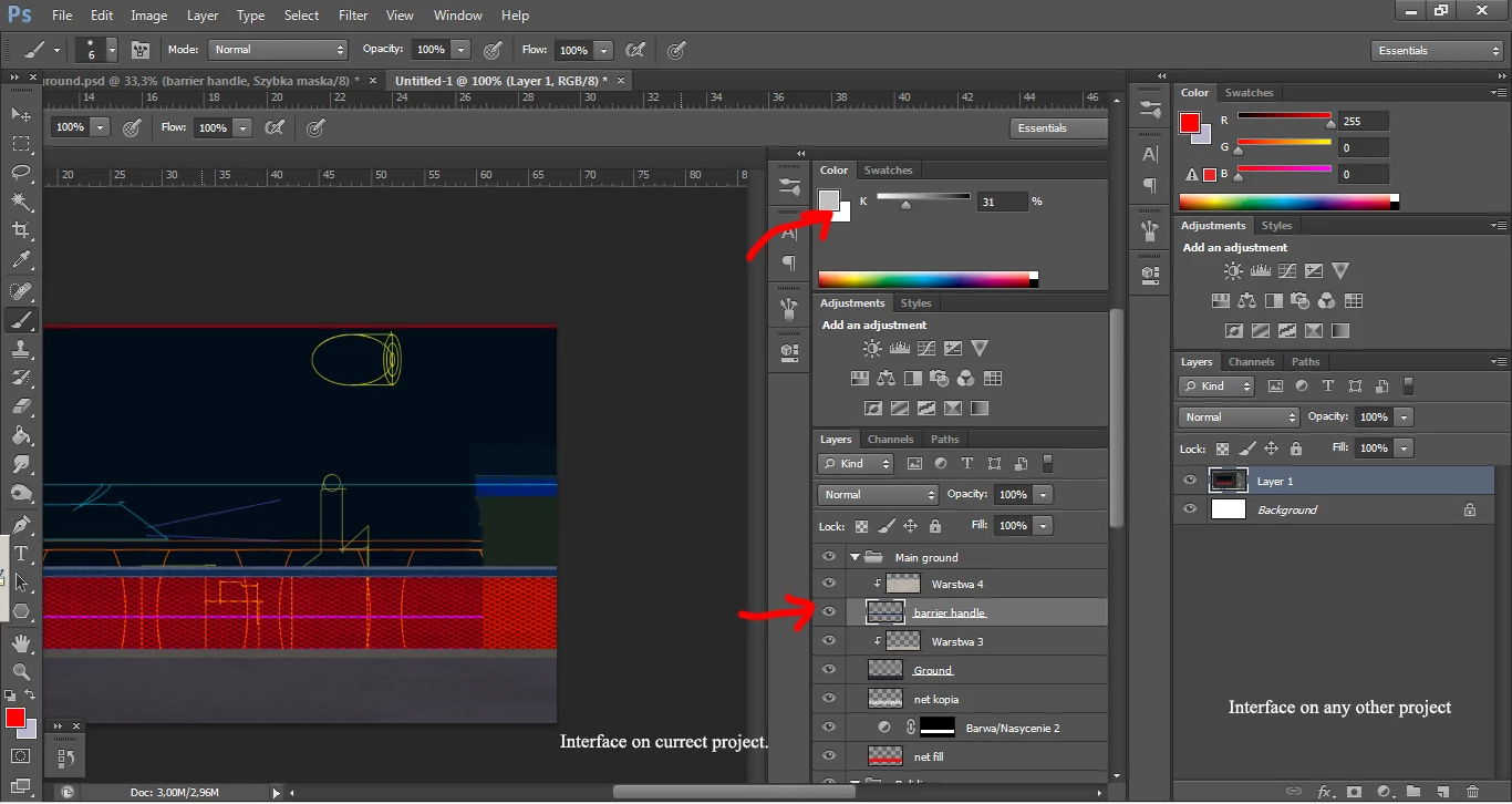 Hello, I am working on a project and come across a problem that never happened to me before. All layers suddently became uneditable, none of them are locked in any way, when I create a new layer I can freely edit it, unless I will select another layer and switch back to the previous one - that layer becomes uneditable too. Colour palette is completely gone, there's only 1 slider for black and white, which doesn't do anything. Using brush or any other tools can't be used, cursor acts like the layer is locked. Selected layer highlight is white, instead of blue. When I rightclick most of my options are disabled. What I found out it can be fixed when I move or open layer options, but once I deselect it I can't edit it again. The problem only exists on that project.