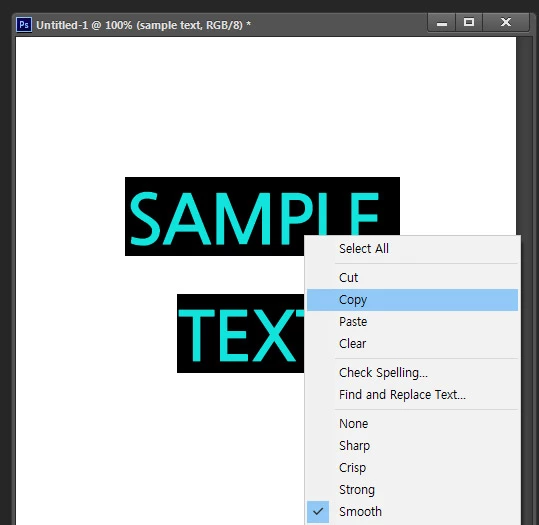 my photoshop is text copy → other text programs (paste) → Not working