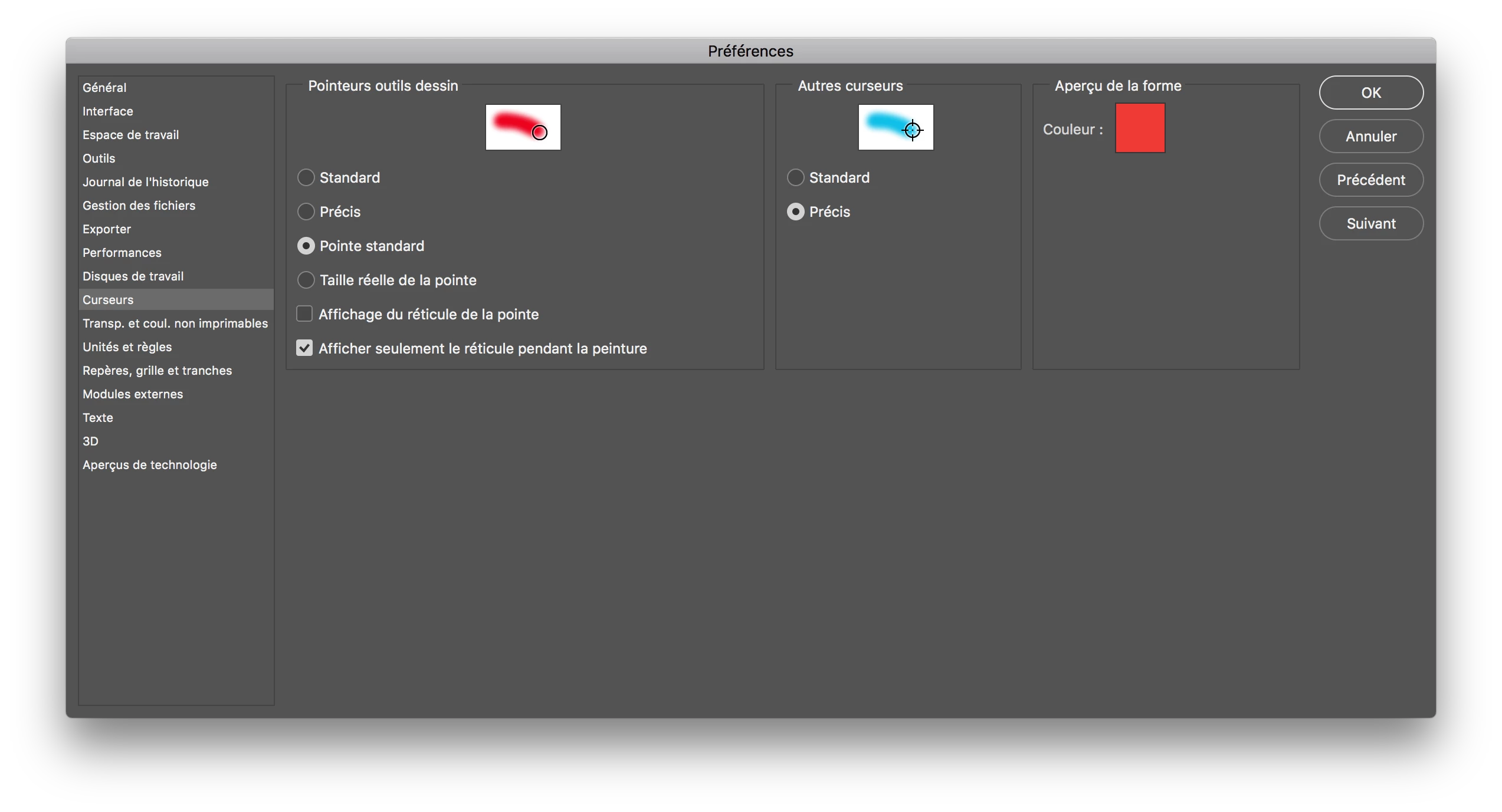 Since few days, I don't see the red shape which help me to see the appearance of the shape.