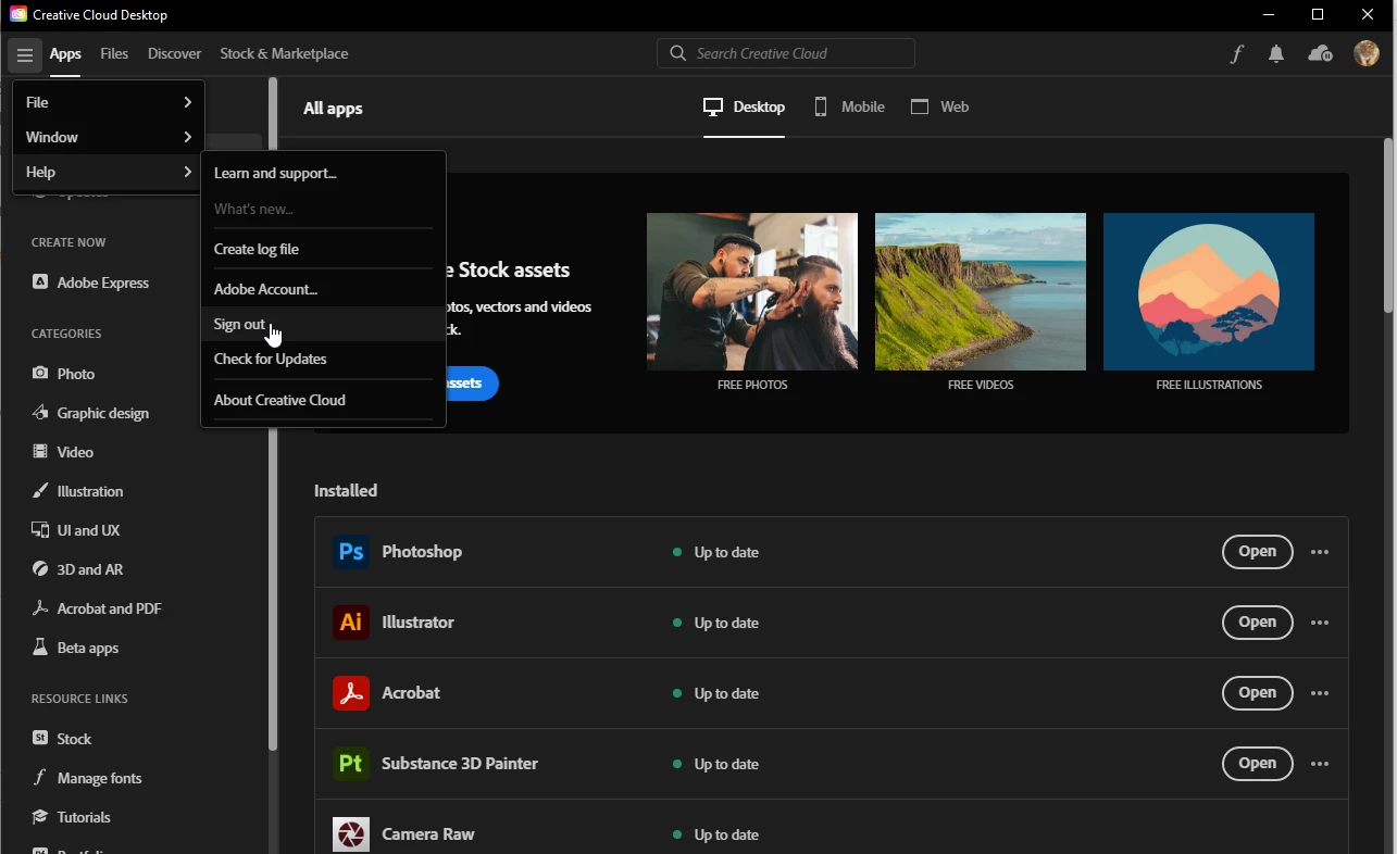 Is that doesn't help, try reinstalling the Creative Cloud app