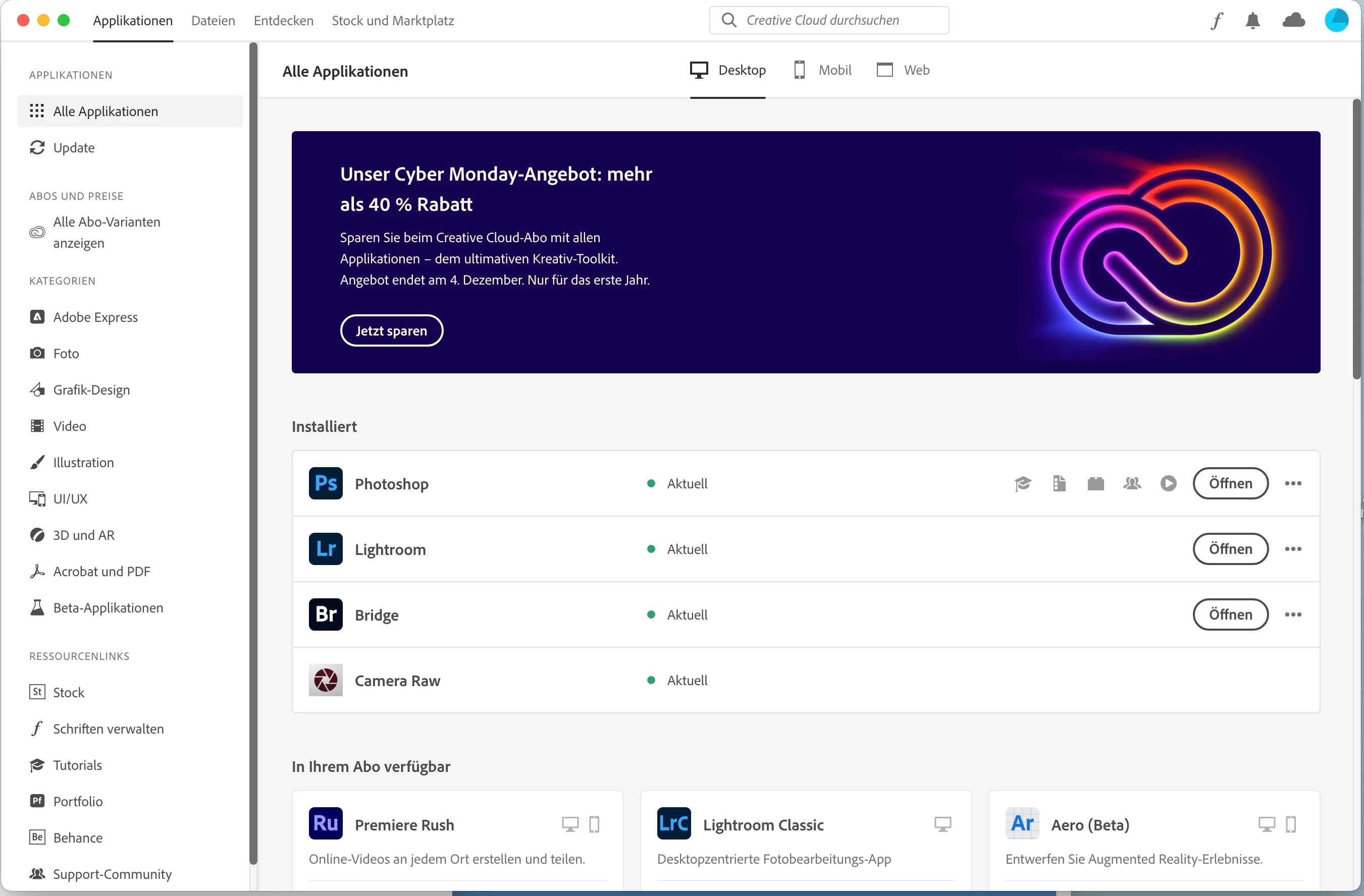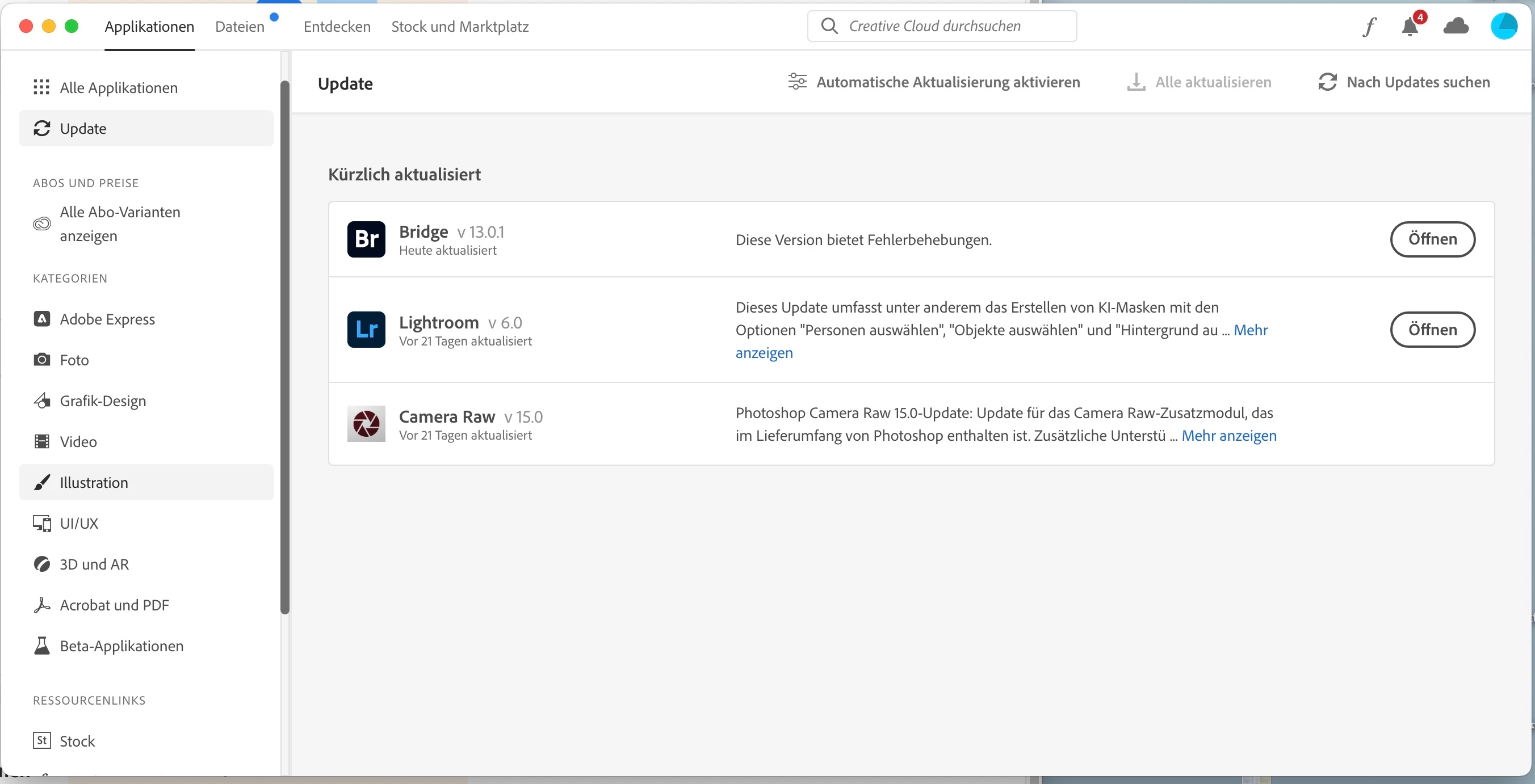 Gehe mal von "Update" auf "Alle Applikationen" (links).