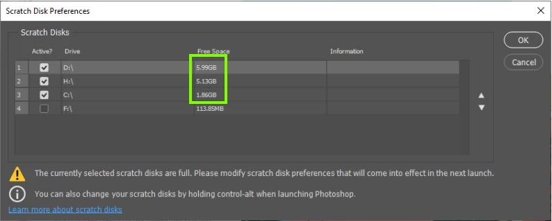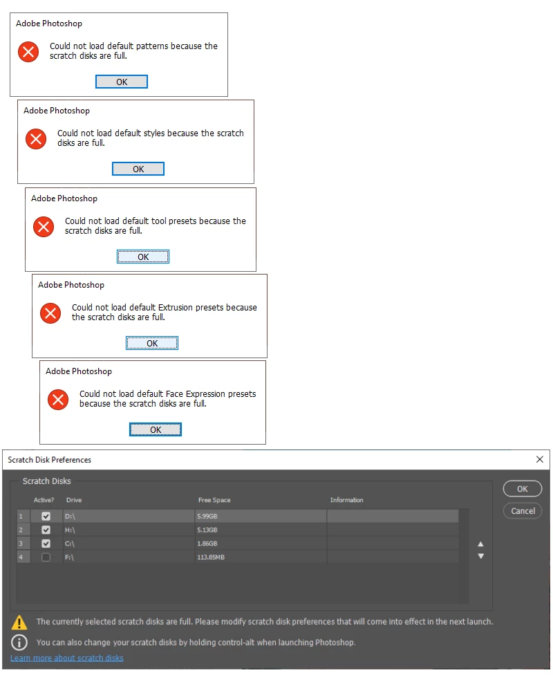 Photoshop do not start, scratch disk problem