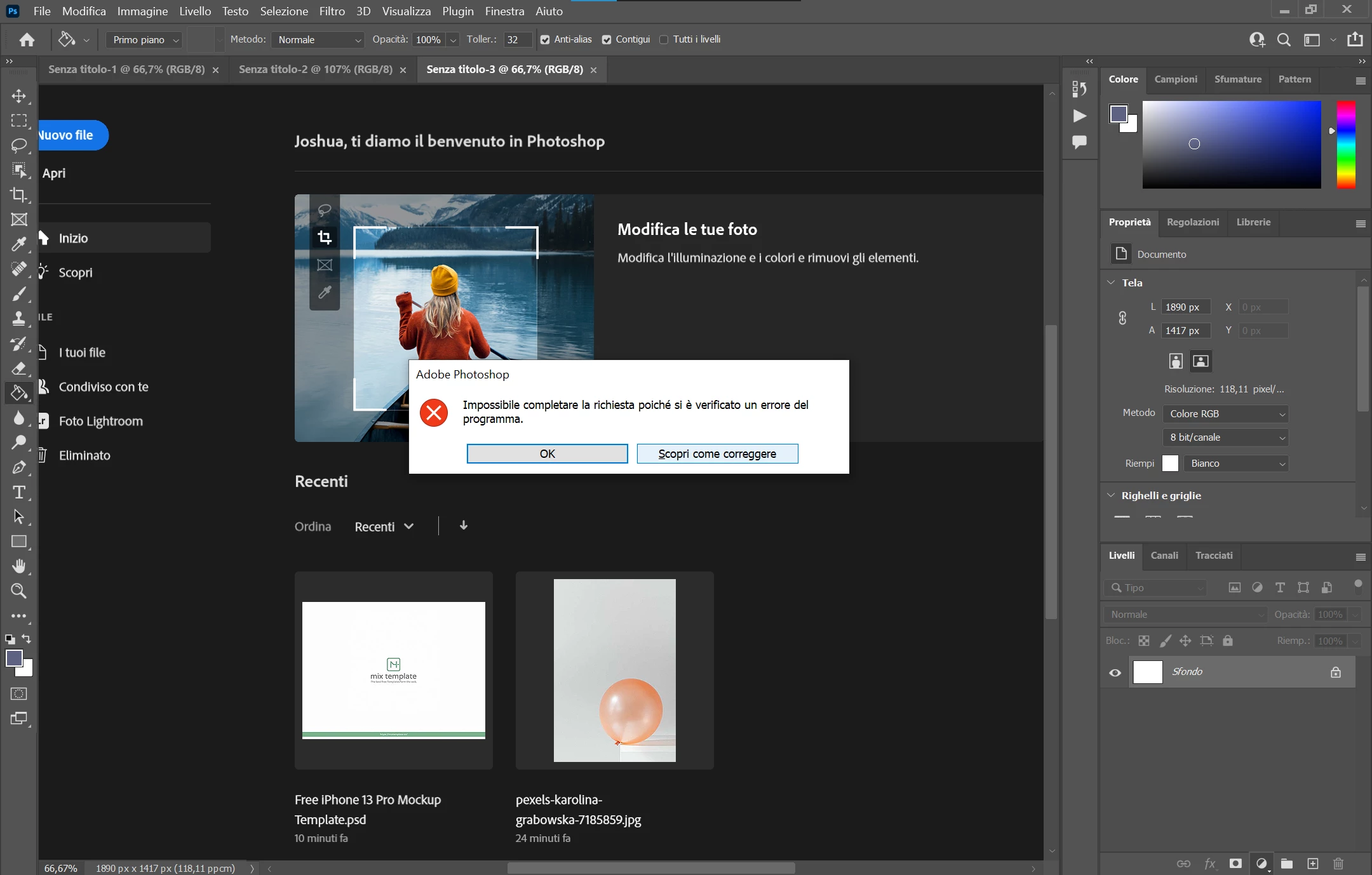 As I already know Photoshop probably has his own intelligent IA that sometimes break herself, I noticed a problem. Now Photoshop decided to go crazy and doesn't allow me to use 3 or more tabs. Really emberassing because it's the third time I face problems like this that just appear of nowhere.